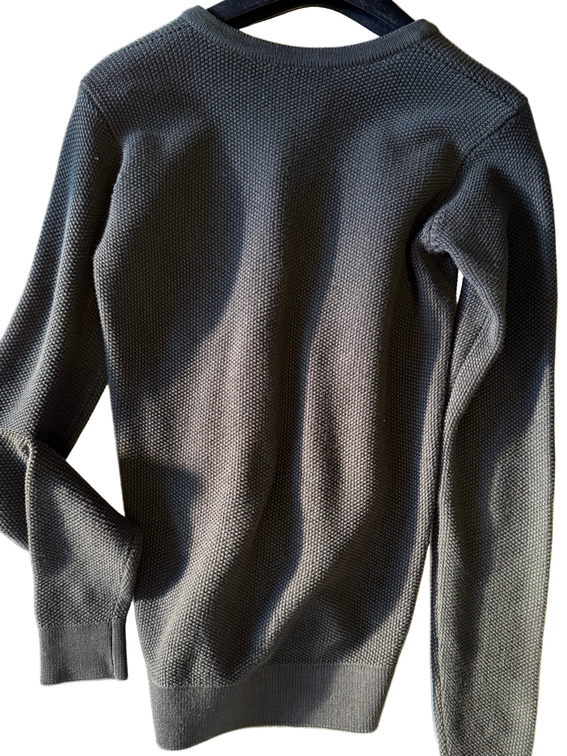 A rare 1990s Chanel cardigan in a rich charcoal waffle-textured knit — the kind of quiet luxury piece that defines an era. Featuring signature gold-tone CC logo buttons and a softly structured silhouette, this style embodies the brand’s effortless sophistication.
